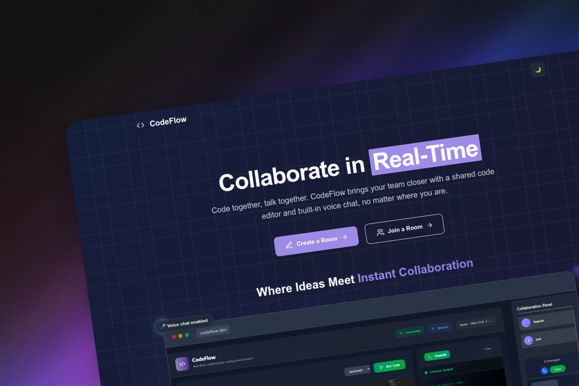Show All ProjectsA real-time collaborative coding platform featuring live audio calls, code synchronization, and chat using WebRTC and Socket.io.